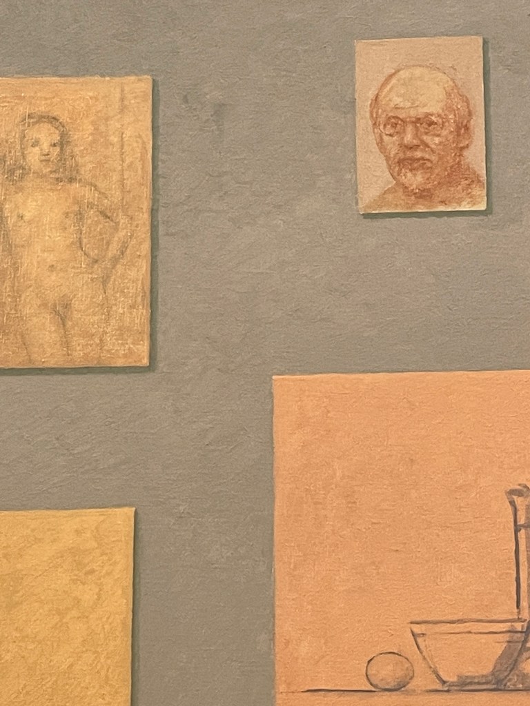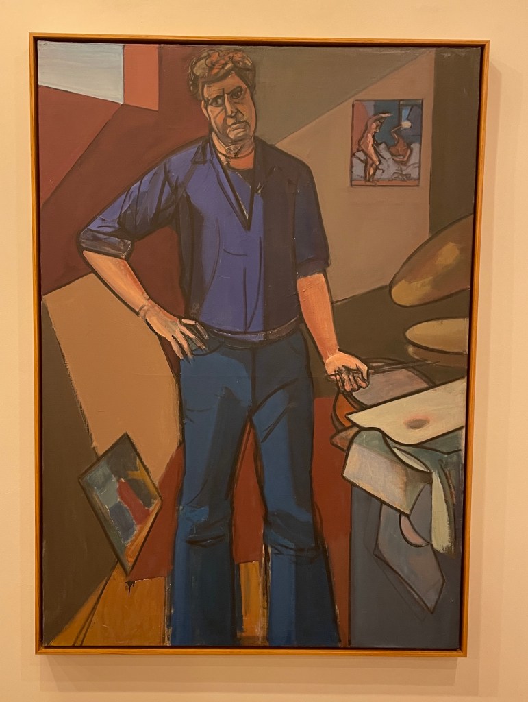 In juxtaposing a self portrait and a figure composition (as seen in the 2022 fall retrospective at the New York Studio School) both the earthy tonal palette and the high chromatic palette can be seen. The latter especially plays to the musicality of Bell’s color and his composing.