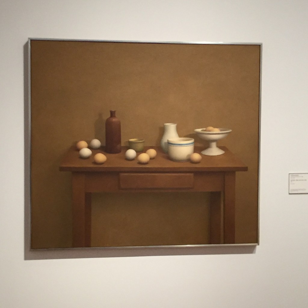 Back in the late 1975, Leland Bell was a visiting artist at RISD and that’s when I first heard him speak and give critiques. He spoke with great animation: Played air drums in front of the painting he was looking at, bringing paintings to life…Around the same time is when I first saw one of Bailey’s still life paintings. The ochre-umber painting of eggs on a table hung in a dining room in Guilford, CT. It’s a quiet push-pull emanation…it cast an aura of peace and contemplation. The coloration of the painting was similar to this one.