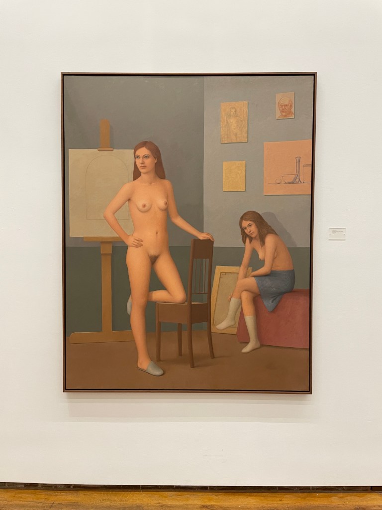 Bailey’s show at Betty Cunningham this fall of 2022, was a moving experience. The drawings and paintings created a shrine-like memorial. The post-humous environment (seen on a rainy day in the quiet afternoon) brought back many memories. The still life drawings, still life paintings, figure studies and group tableaus conduct marvelous orchestrations of volume and color. One curve echoes another, and one object or persona balances the other. Symmetry seems within grasp, and then vanishes. The order is maintained, but only as each exerts its identity as the whole of the work knits an effervescent field.