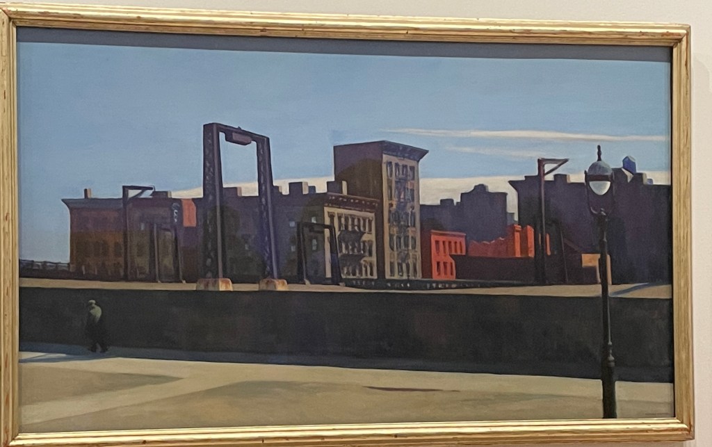 After seeing the Bailey show at Betty Cunningham Gallery, I went to the Whitney Museum and saw the Hopper in NY show. Such lonely paintings, such a sense of light, beautiful strong compositions. Reflecting back, Bailey’s way of painting feels relatively poetic and filtered through his own sensibility. By contrast, Hopper, whose work Bailey admired tremendously, feels more hard and illustrational. There are, however, moments in Hopper’s paintings that have tremendous improvised surfaces, scumbly moments of searching paint. They are so direct.