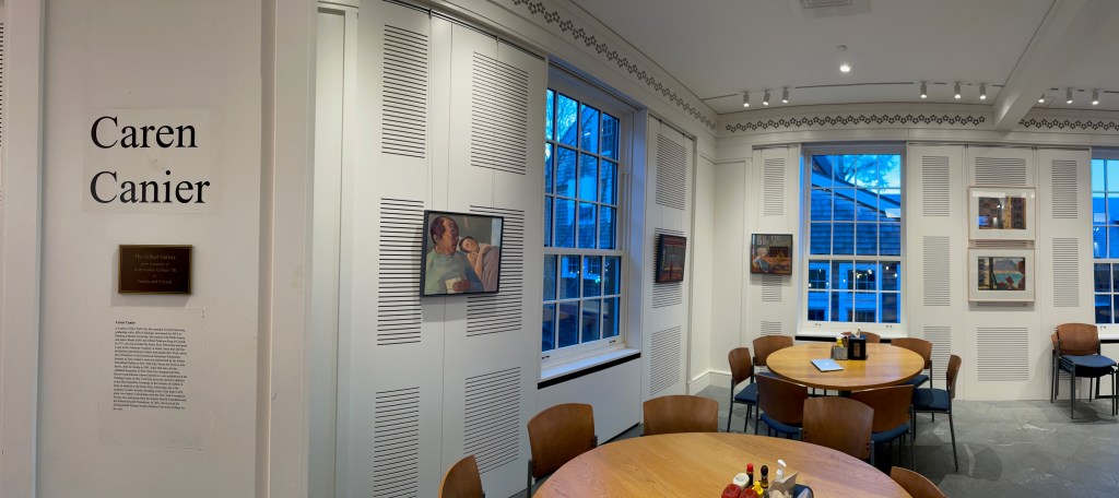 My students treasured the time with Caren! I heard many compliments about her talk and the slides. One student (who is not in that group but was in the studio last year and was back that afternoon, and is a huge admirer of the mystical painter Carrington) said that as soon as Caren talked about painting what you love, they were completely fired up. Another student and I were captivated by and still thinking Caren’s Three Friends painting, an early one. And I admired her Joyce painting (Albergo Sole).