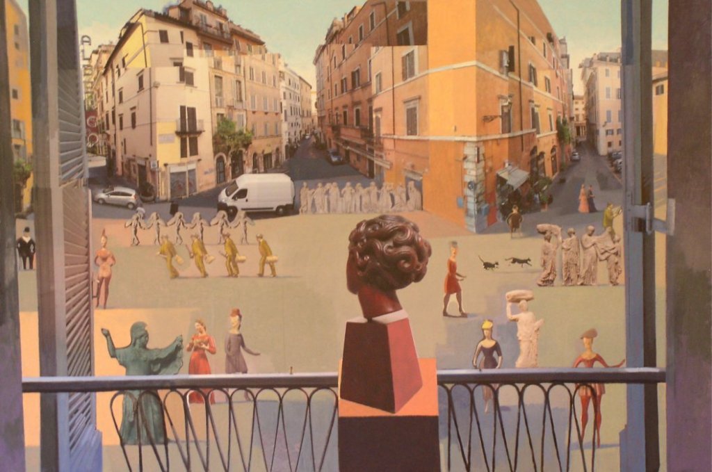 L’Amica Geniale and in Storia del Nuovo Cognometoria oil on panel (Elena Ferrante) 30×40″ 2019