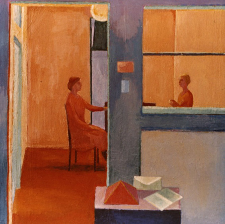 Two Women Having a Conversation oil on canvas 36 X 36″ 1975