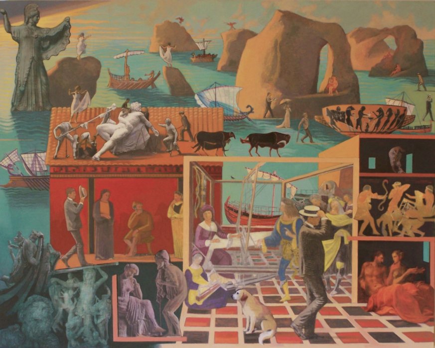 Above: James Joyce and Homer mixed media with oil on panel 40 X 50″ 2008