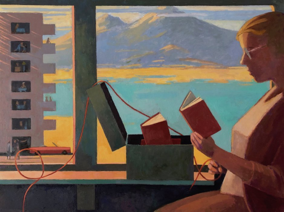 L’Amica Geniale and in Storia del Nuovo Cognometoria oil on panel (Elena Ferrante) 30×40″ 2019